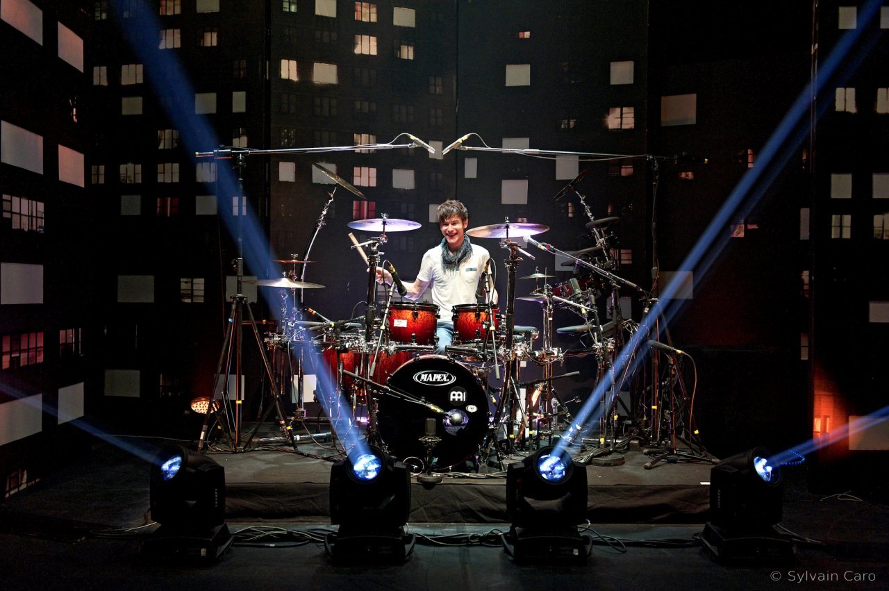 Everyone in our school knew what a fantastic drummer Simon was, and working with him 5 days a week for many months in that job meant I got to see it first hand. He had certainly put a lot of work in, playing drums since he was 4 years old and doing shows with his musician parents around France throughout his childhood. He was the youngest endorsee of Mapex when he joined them in 2005. After his stint with Xenomania, he went on to play with many high profile acts, such as Tinchy Stryder, Taio Cruz, Christophe Willem, Charli XCX and Gloria Gaynor. He’s most recently been busy touring with the legendary Pet Shop Boys. I got on the phone with him one Saturday afternoon to ask him for the juicy details of his tours — past and present.